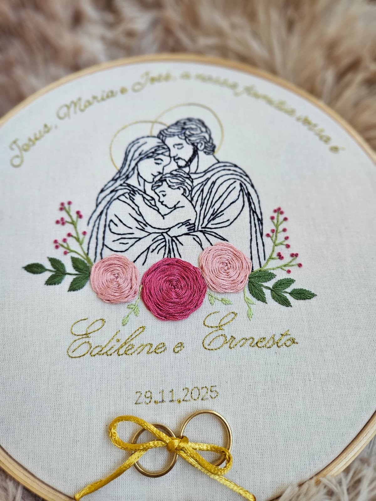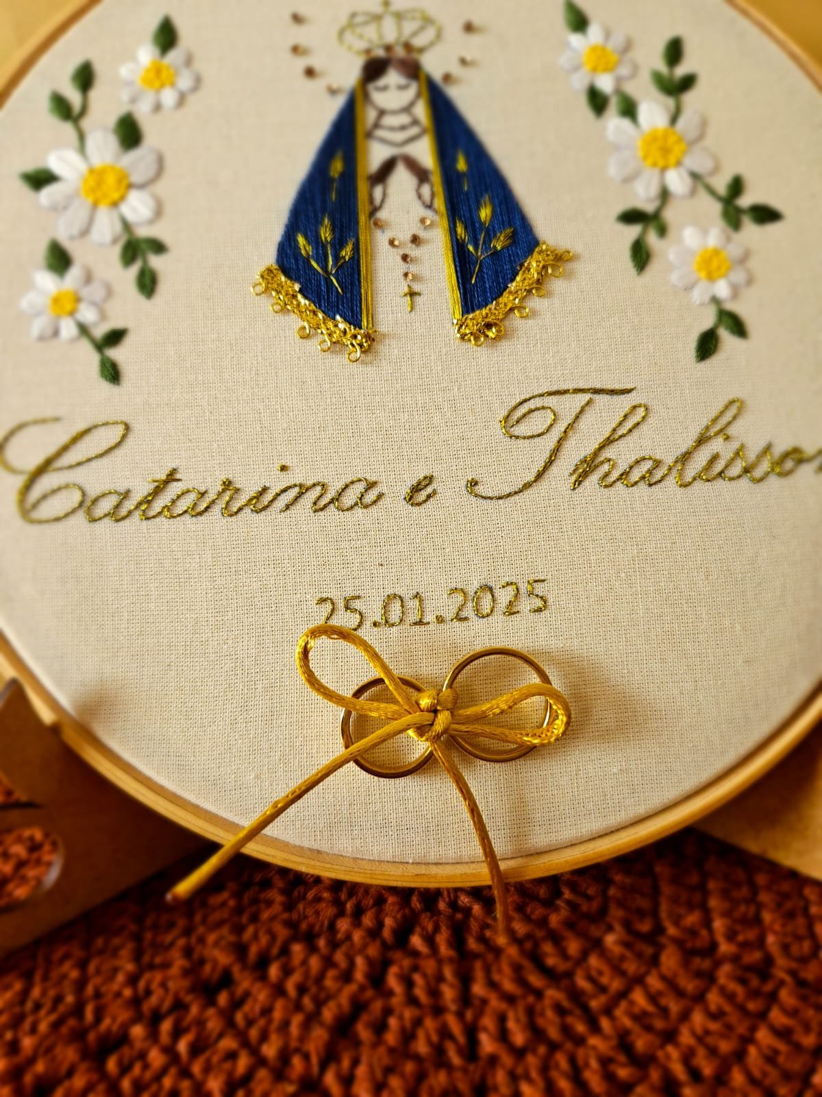 Escolha um bastidor de casamento bordado à mão e personalize os detalhes de acordo com o estilo e a história de amor de vocês. Crie algo exclusivo que emocione e transforme o seu dia em um símbolo eterno de união.