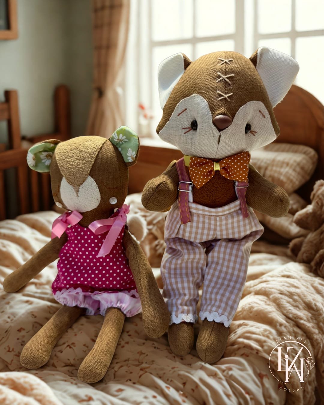 Boneco artesanal em tecido, com visual simpático e acabamento cuidadoso. Ideal para presentear crianças ou decorar com charme.