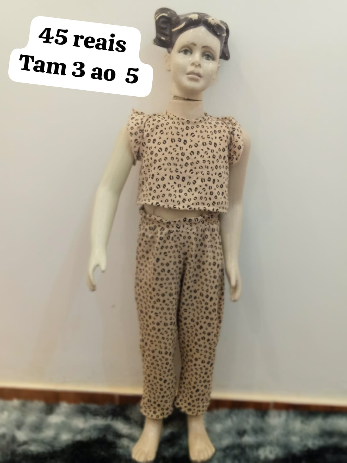 Conjunto infantil moderno com estampa animal print. Conta com blusinha e calça leve, ideal para looks estilosos e confortáveis 🐆