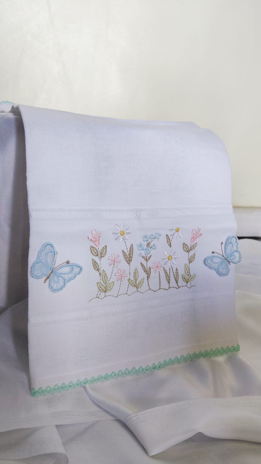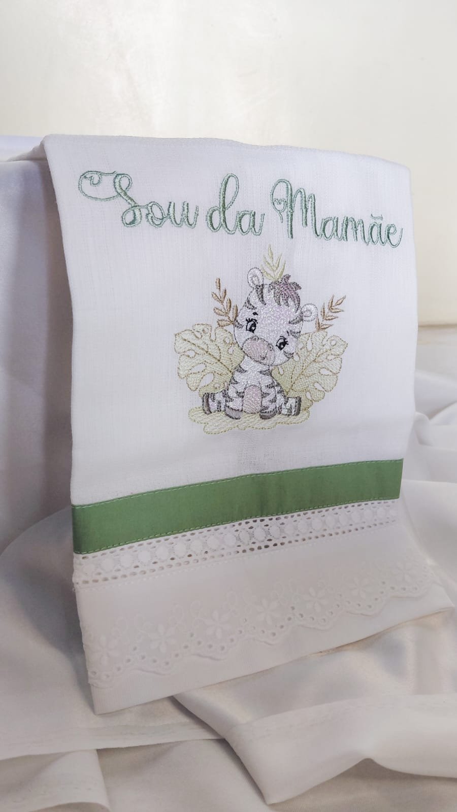 Fralda de boca confeccionada em tecido macio, com bordado delicado e acabamento refinado. Ideal para o enxoval do bebê ou para presentear.