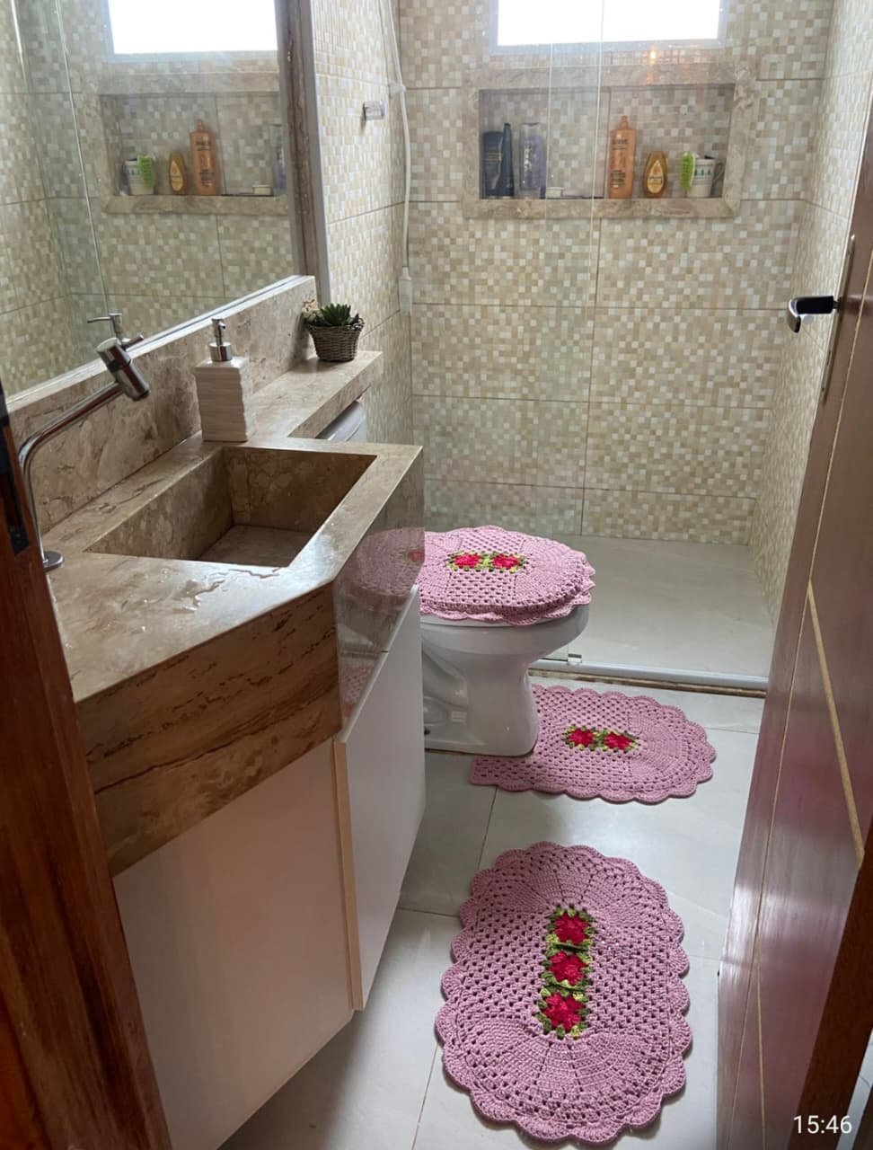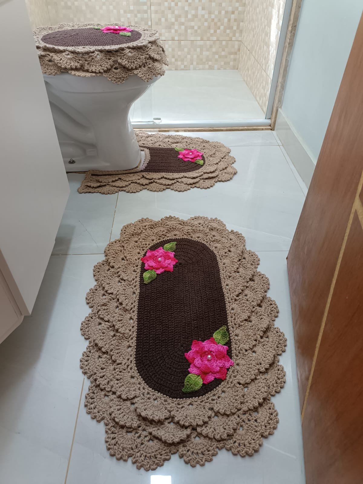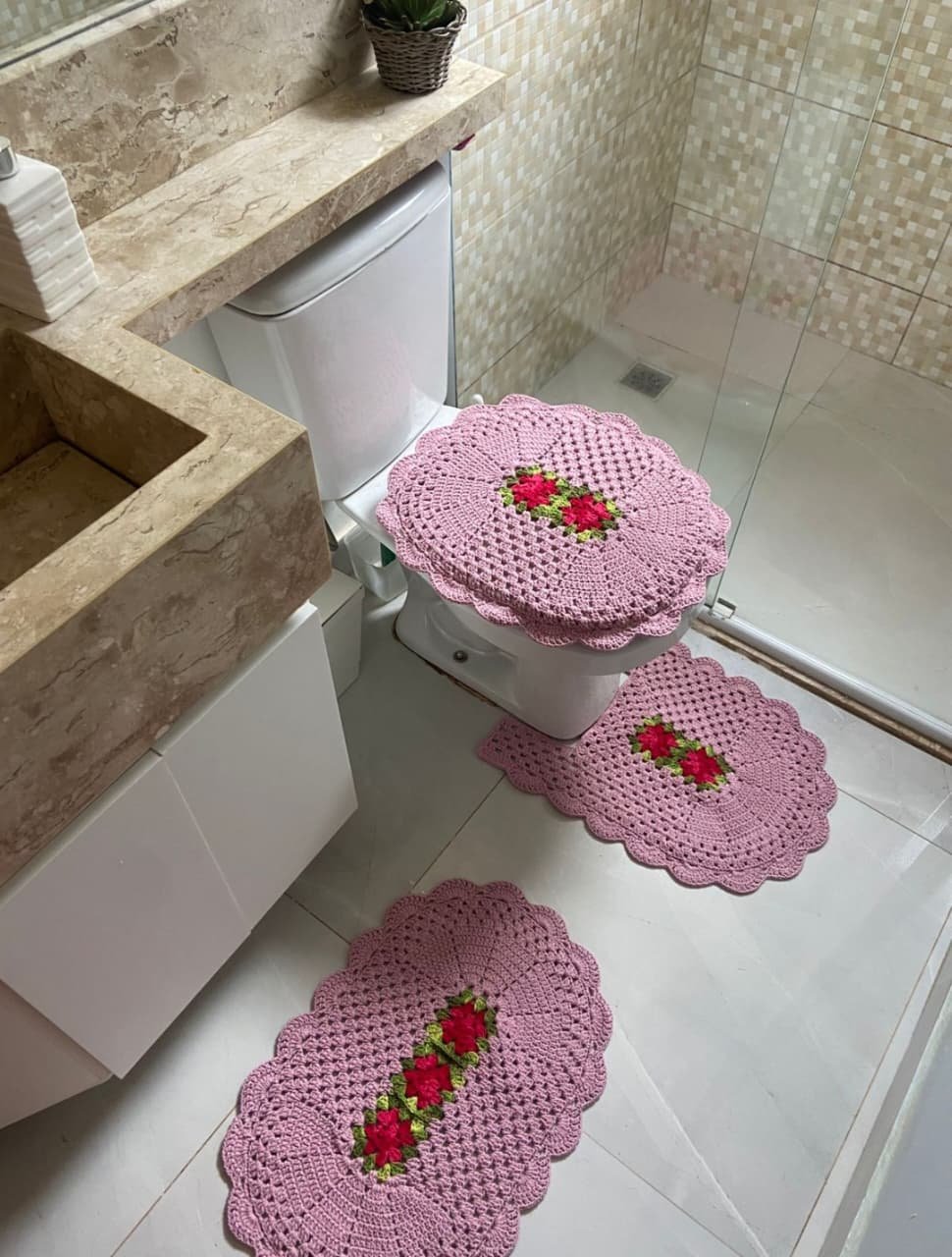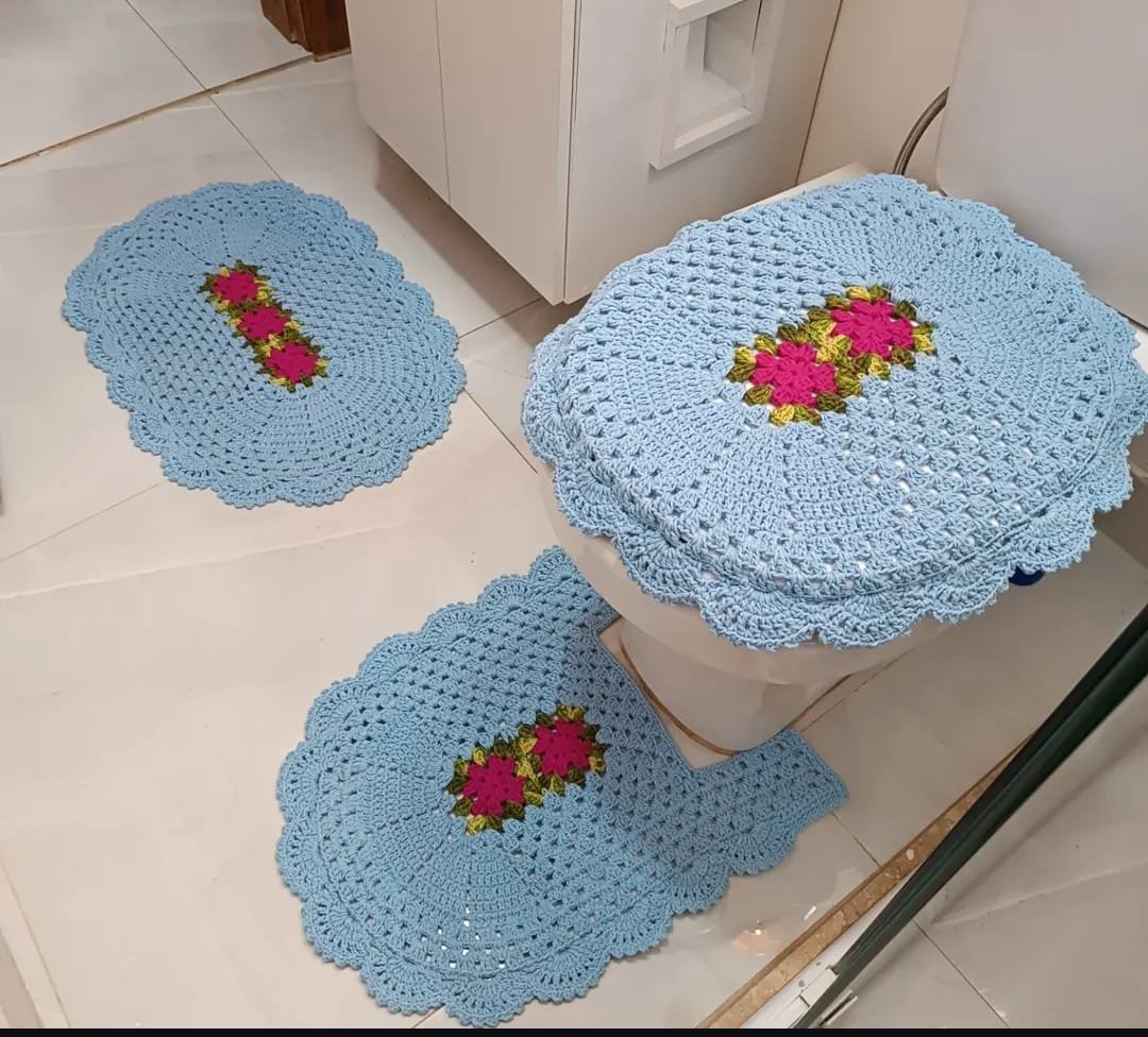 Lindo kit de banheiro artesanal em crochê, perfeito para deixar seu banheiro mais aconchegante e elegante.