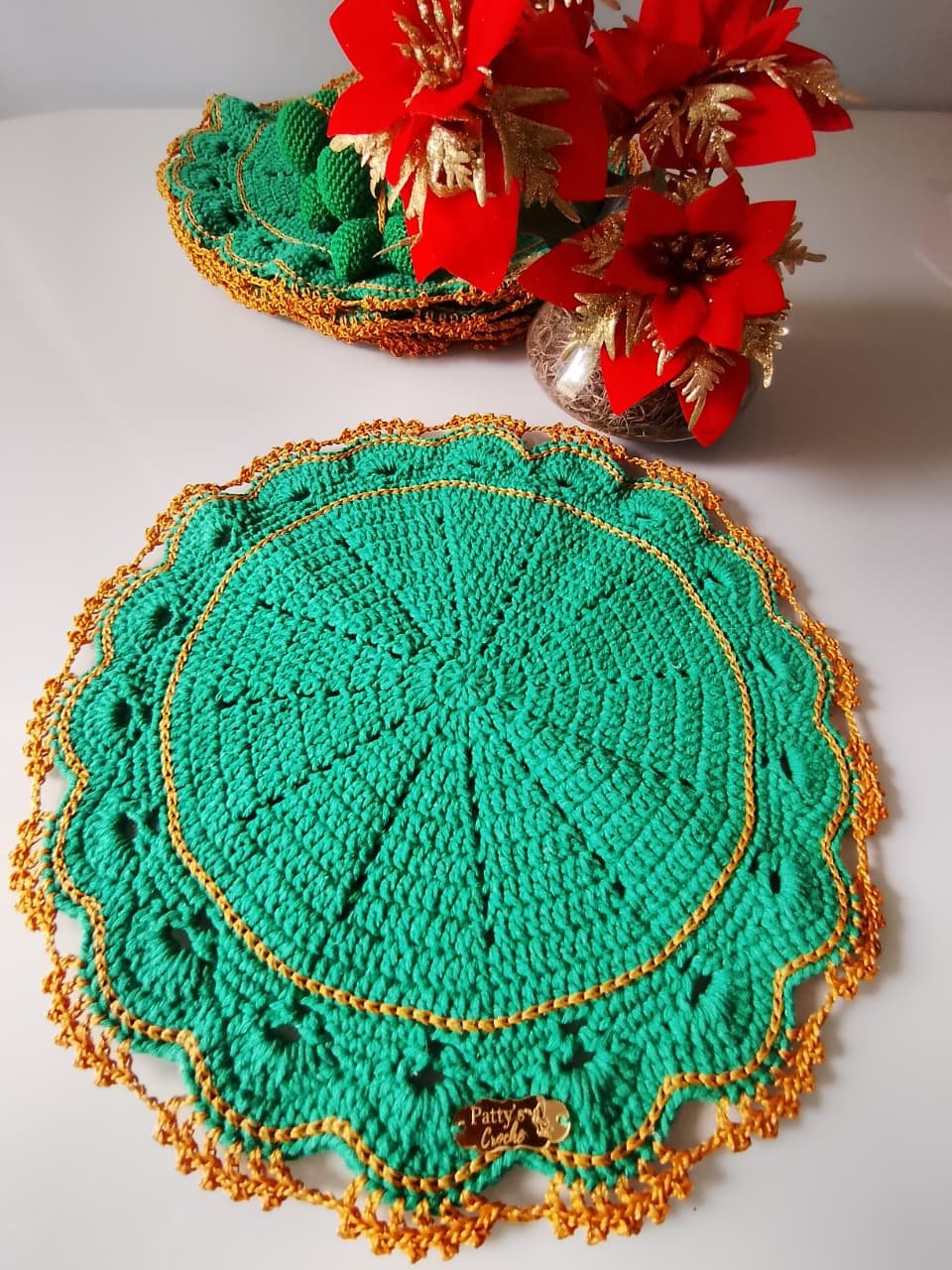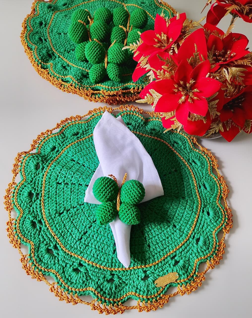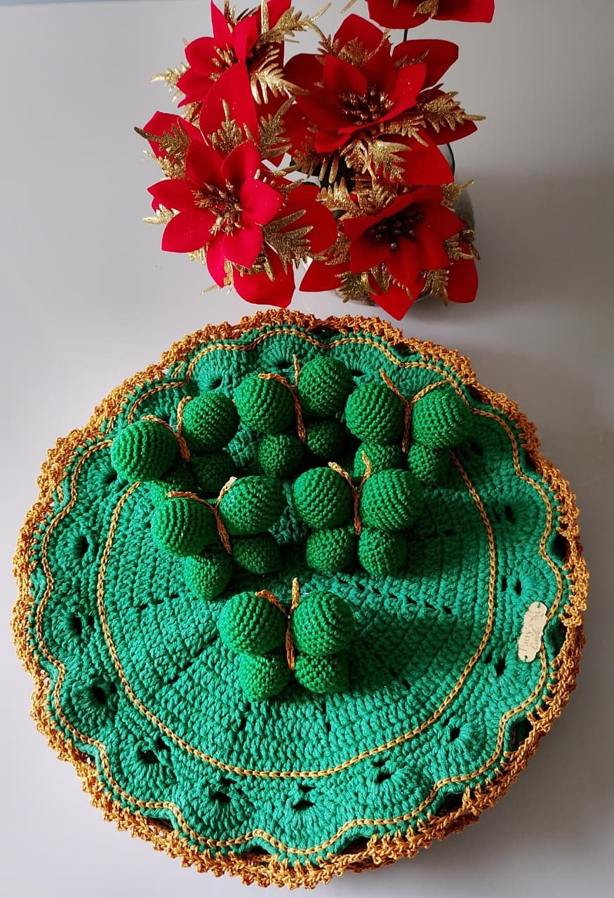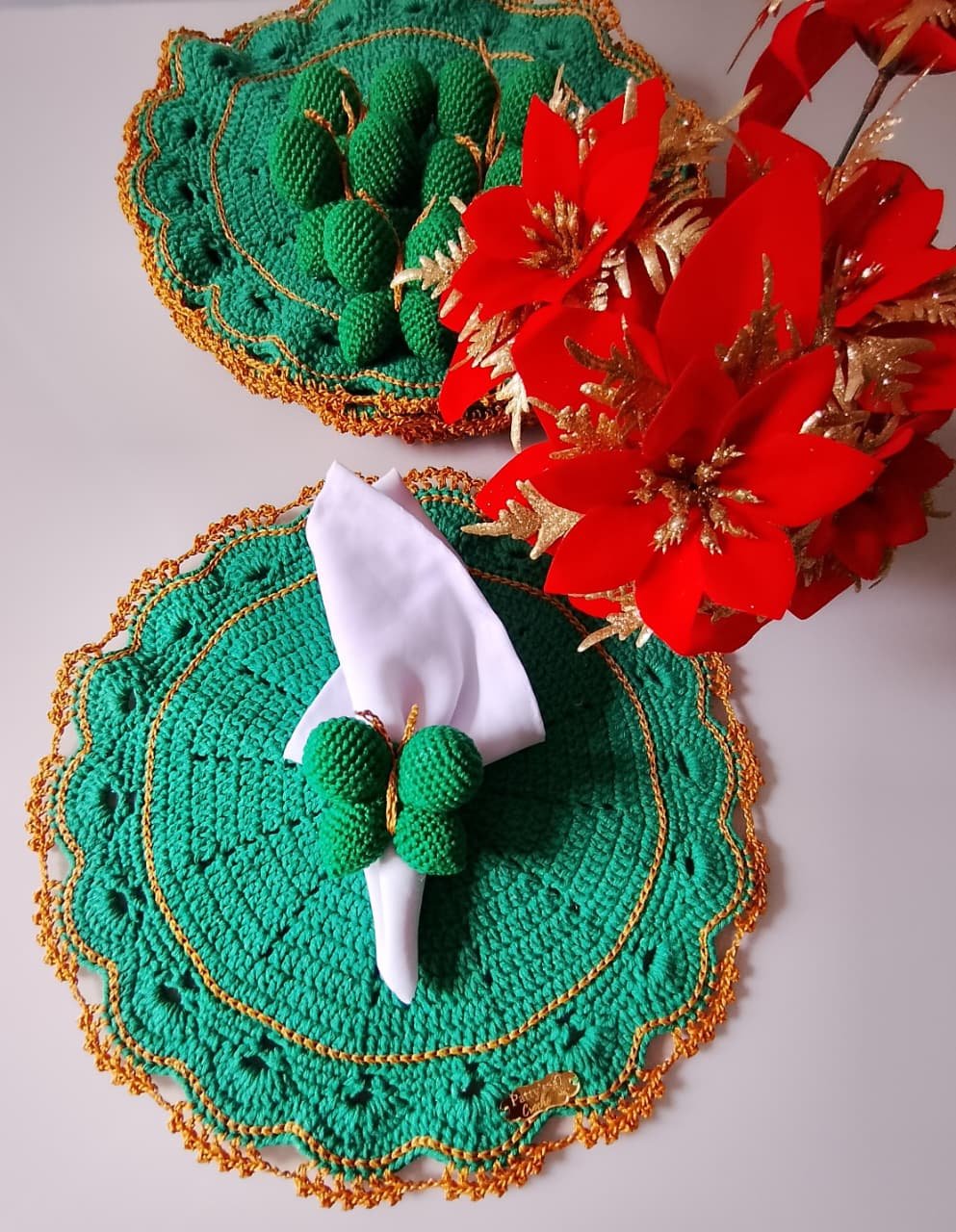 Sousplat em crochê com porta guardanapo, ideal para deixar sua mesa posta ainda mais sofisticada.