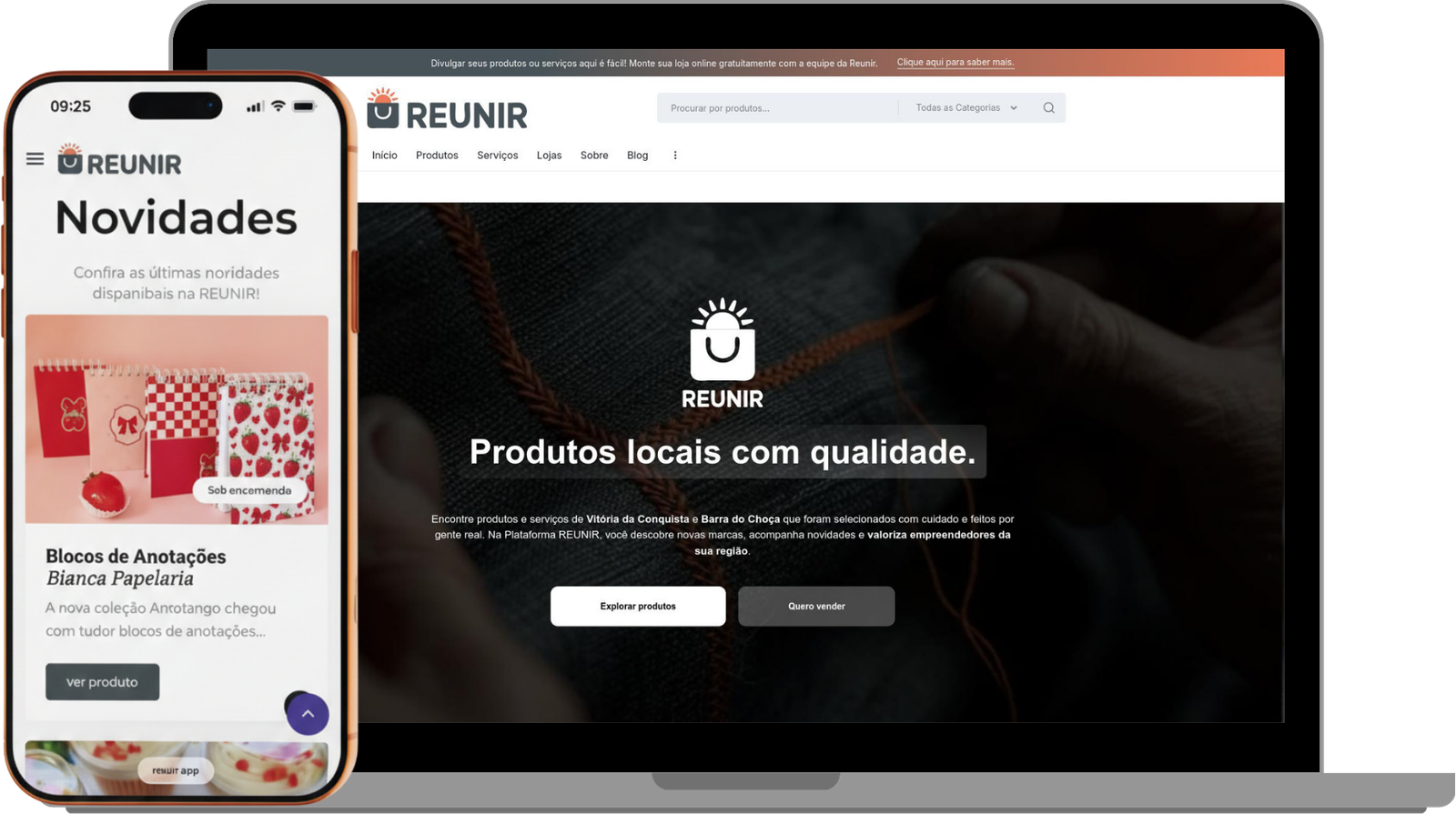 Somos mais que um canal de vendas: somos um ponto de encontro para quem busca um consumo consciente, ético e transformador. Oferecemos um espaço inclusivo e acessível para a comercialização de produtos e serviços que carregam a história e o talento de Vitória da Conquista e Barra do Choça. Aqui, cada escolha de compra é um ato de apoio à economia local. A REUNIR é uma plataforma de tecnologia social que transforma o consumo em uma ferramenta de mudança. Atuamos como uma vitrine para o trabalho de produtores e prestadores de serviços local e regional.